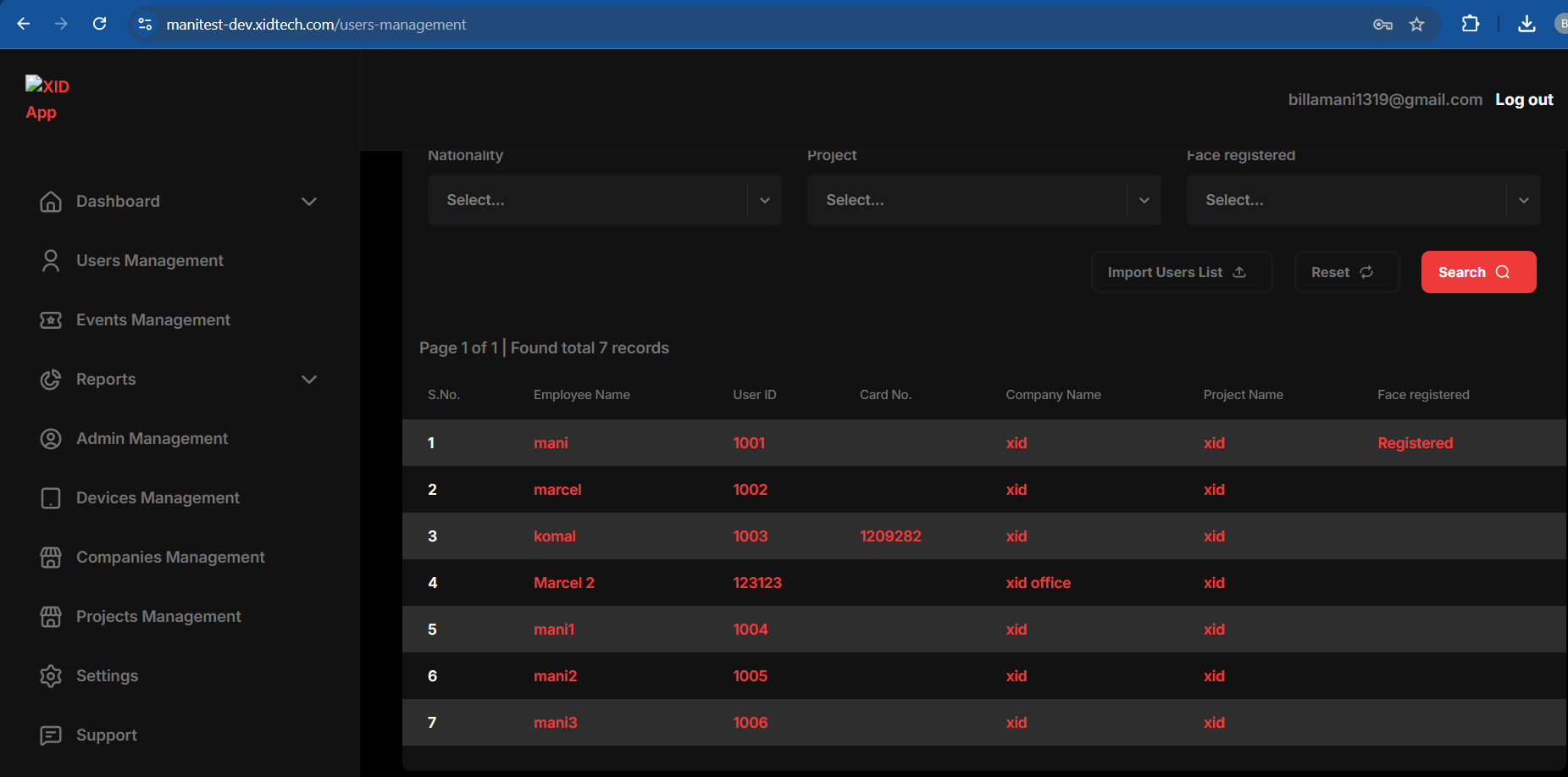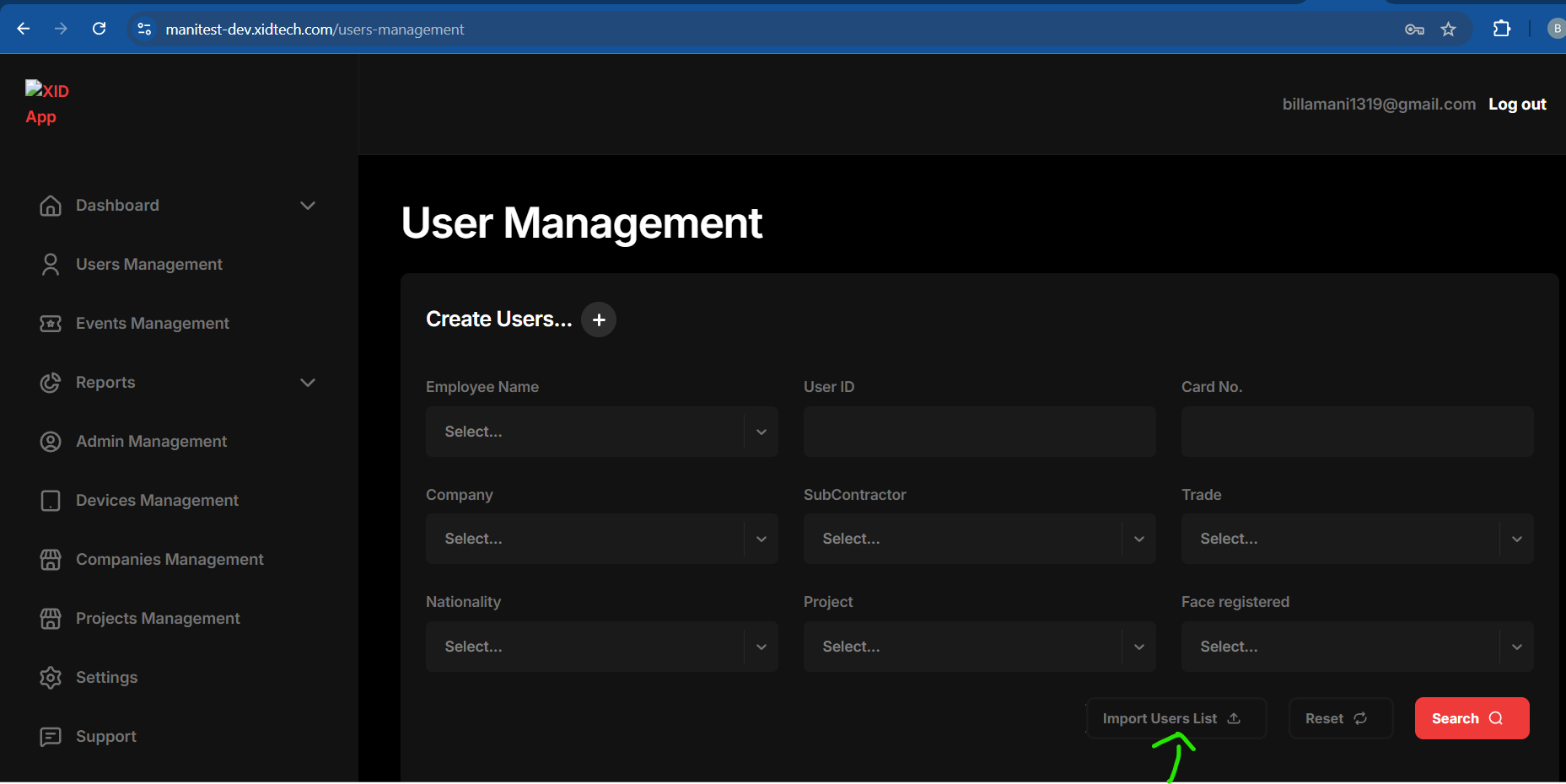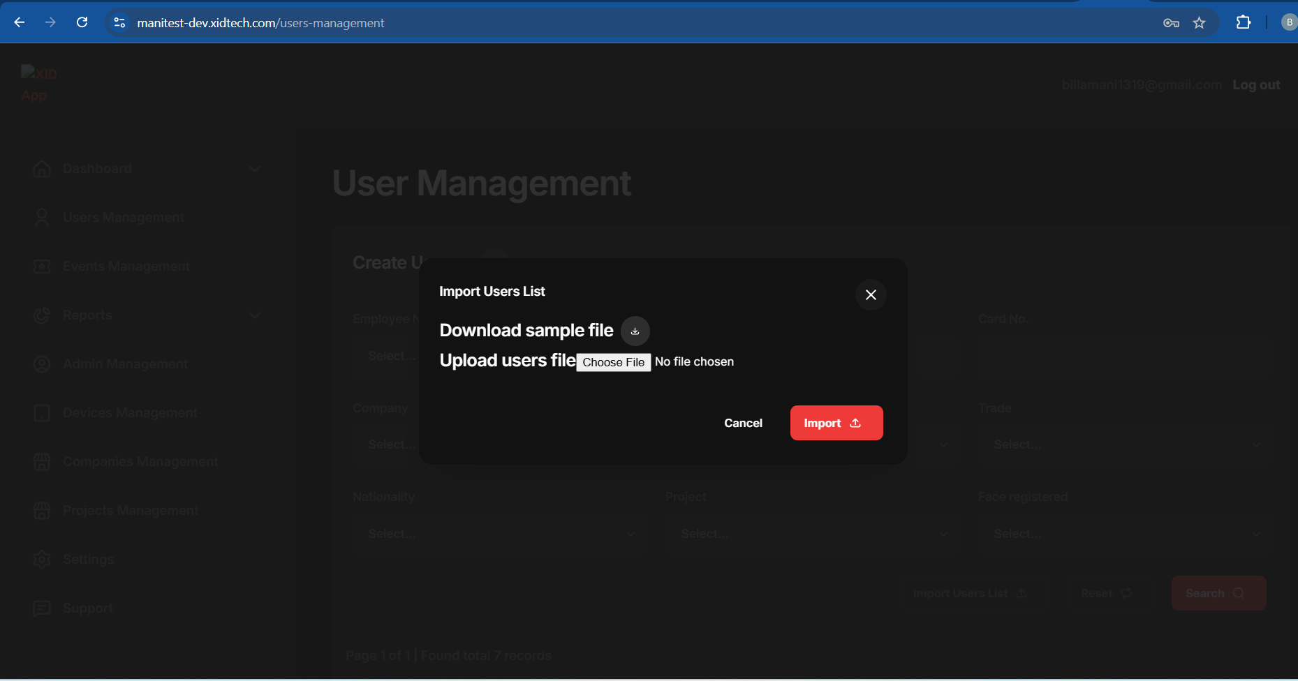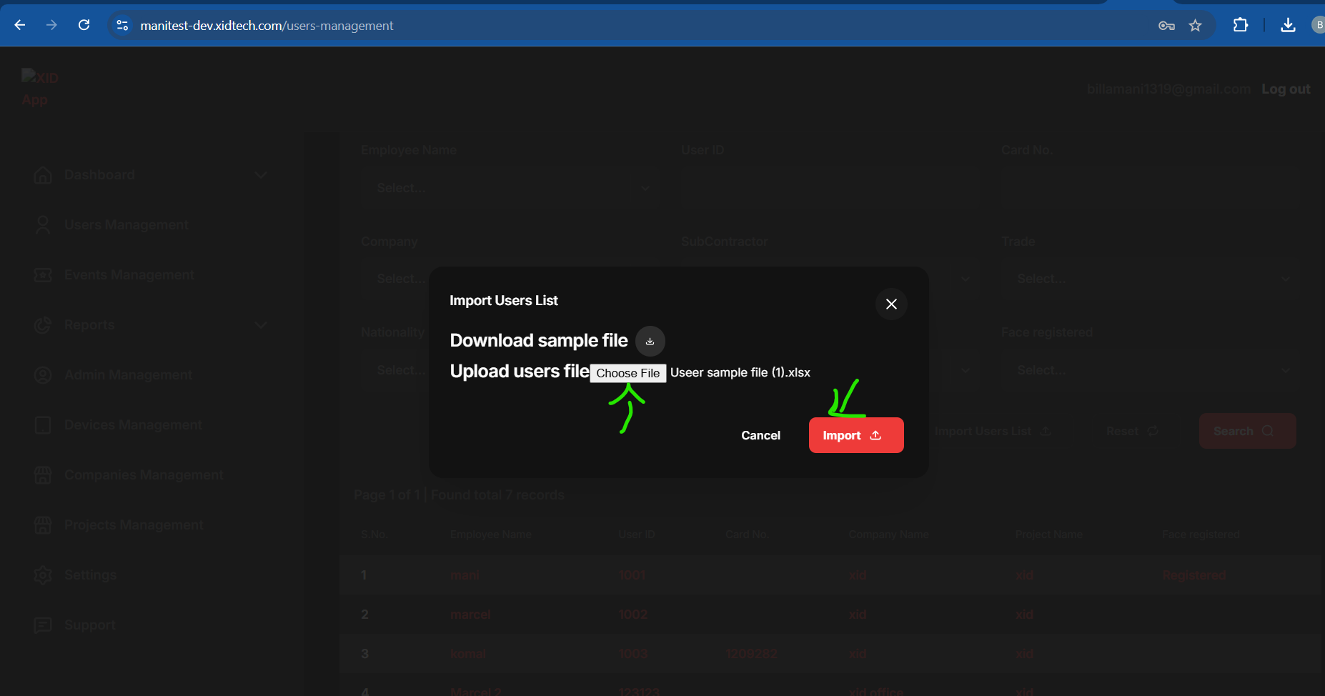 #### Import User List for Bulk user upload