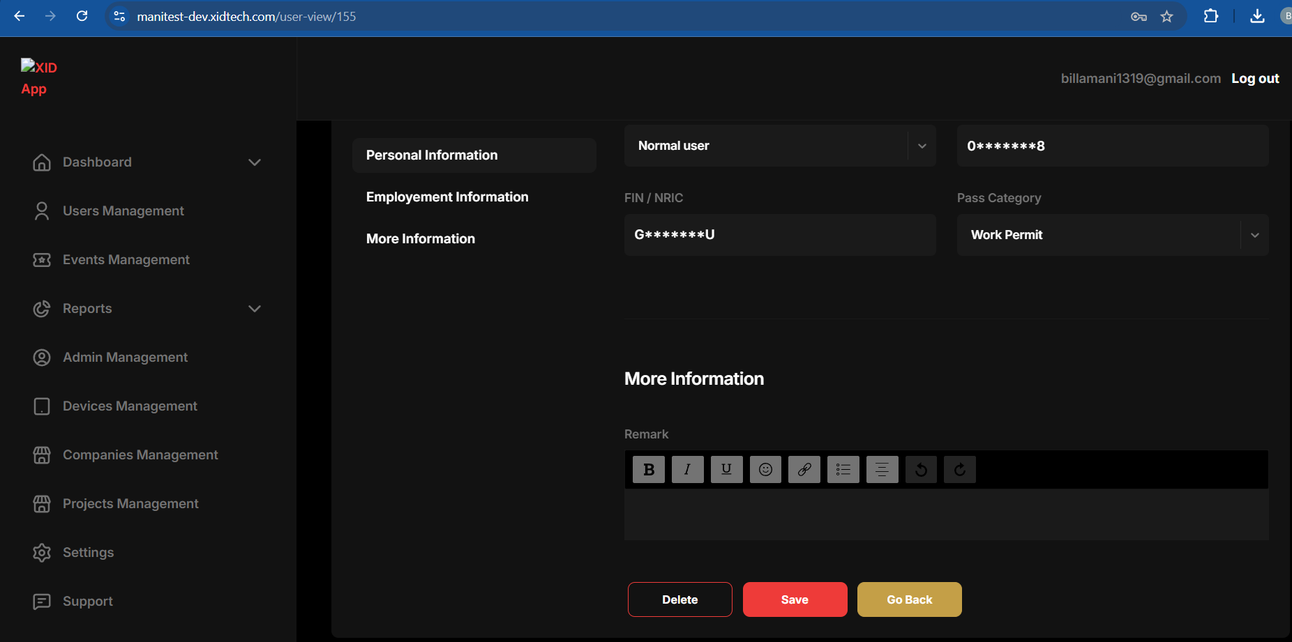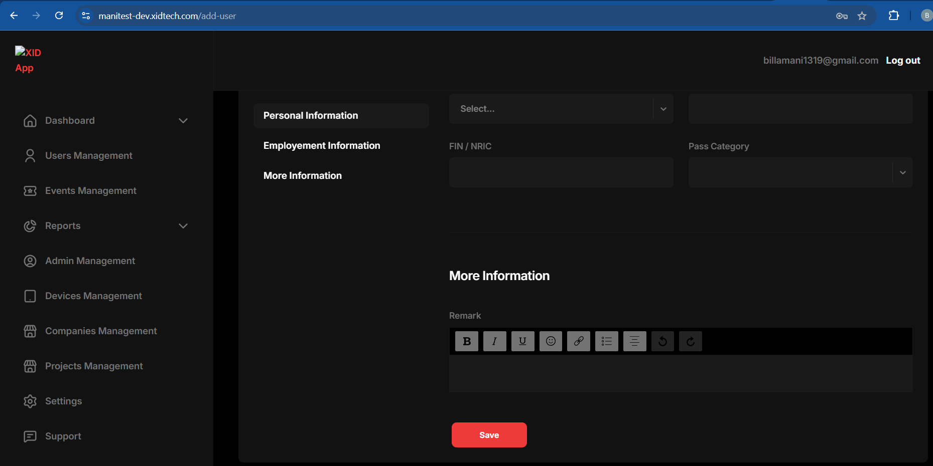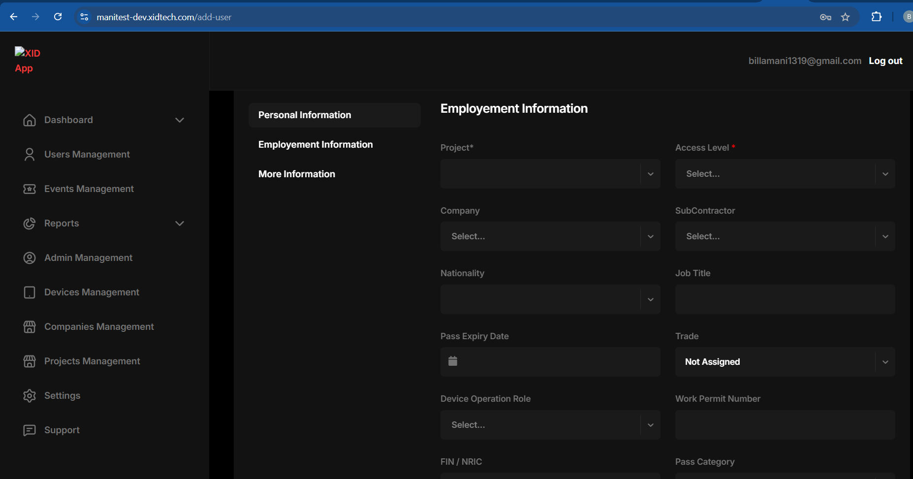 ### Add personnel Information & Employment Information & Save